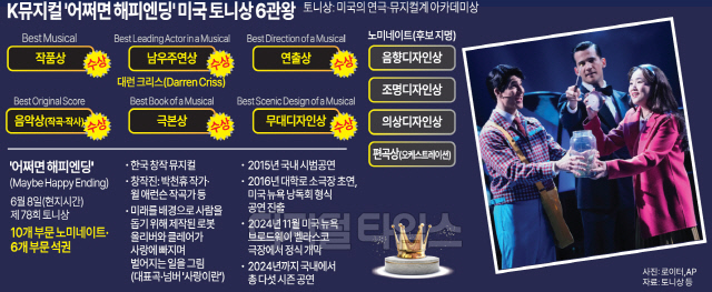 미국 뉴욕 브로드웨이에 진출한 한국의 창작 뮤지컬 '어쩌면 해피엔딩'(Maybe Happy Ending)이 미국의 연극·뮤지컬계 아카데미상이라 불리는 토니상에서 최고 영예인 작품상(Best Musical)을 포함해 6관왕을 차지하며 'K-뮤지컬'의 역사를 새로 썼다.