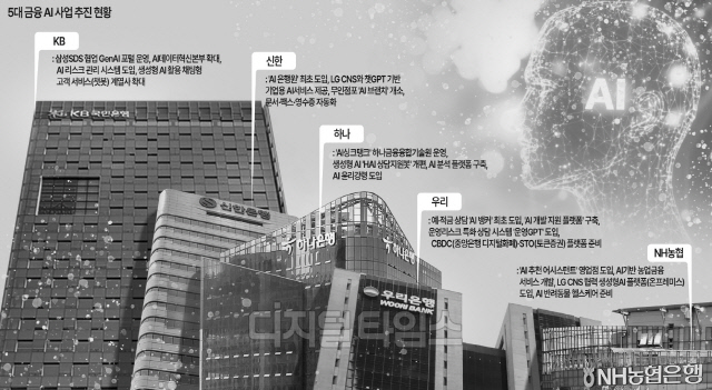 이재명 정부가 '인공지능(AI) 3대 강국'을 선언하자 금융권도 AI사업 확장에 주력하고 있다. 단순한 '기술 도입'을 넘어 비용 절감, 업무 효율화, 고객 경험 향상을 이뤄 신규 비즈니스 모델을 창출하기 위해서다. 이에 5대금융(KB국민·신한·하나·우리·NH농협)은 AI부서 신설 및 조직개편을 통해 AI 기반 금융비서, 자산관리, 연구소 설립 등 각 지주에 맞는 사업 진행으로 경쟁력 강화에 힘을 주고 있다.