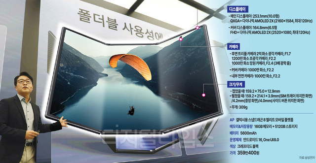 삼성전자가 253㎜(10인치) 태블릿급 대화면을 갖춘 두 번 접는 스마트폰 ‘갤럭시 Z 트라이폴드’를 공개하고 글로벌 시장 공략에 나섰다. 접었을 땐 바(bar) 형 스마트폰이지만 펴면 태블릿PC 못지 않게 시원한 사용감을 선사한다. 삼성전자는 새로운 폼팩터(형태)로 폴더블 기술력을 한 단계 끌어올려 프리미엄 스마트폰 시장에서 초격차 전략을 강화하겠다는 전략이다.