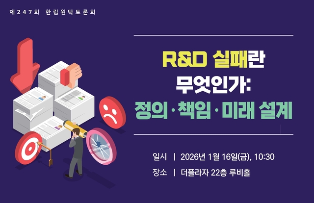 한국과학기술한림원은 16일 오전 ‘연구개발(R&D) 실패란 무엇인가-정의·책임·미래 설계’를 주제로 제247회 한림원탁토론회를 온·오프라인으로 연다고 15일 밝혔다.
