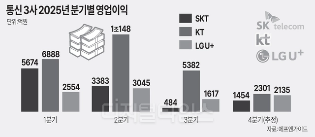 다만 연간 기준으로는 비교적 견조한 실적을 유지한 것으로 평가된다. 통신 3사의 지난해 연간 합산 영업이익은 4조5101억원 수준으로 4조원을 웃돌았을 것으로 추정된다.
