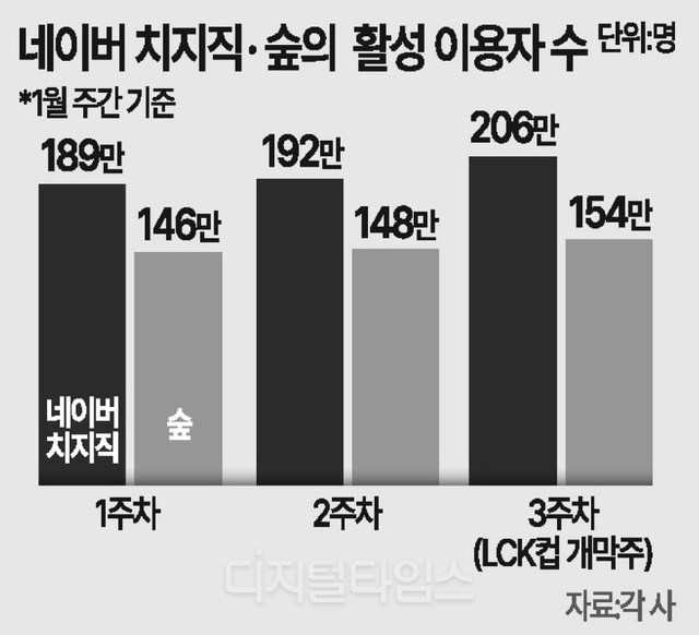같은 기간 숲 역시 △146만(1주차) △148만(2주차) △154만명(3주차) 등으로 성장세를 보였지만, 치지직이 선보인 ‘치지직컵’, ‘2025 아프리카 네이션스컵’ 중계 등이 시너지를 내면서 경쟁사인 숲과의 격차를 벌린 것으로 풀이된다.