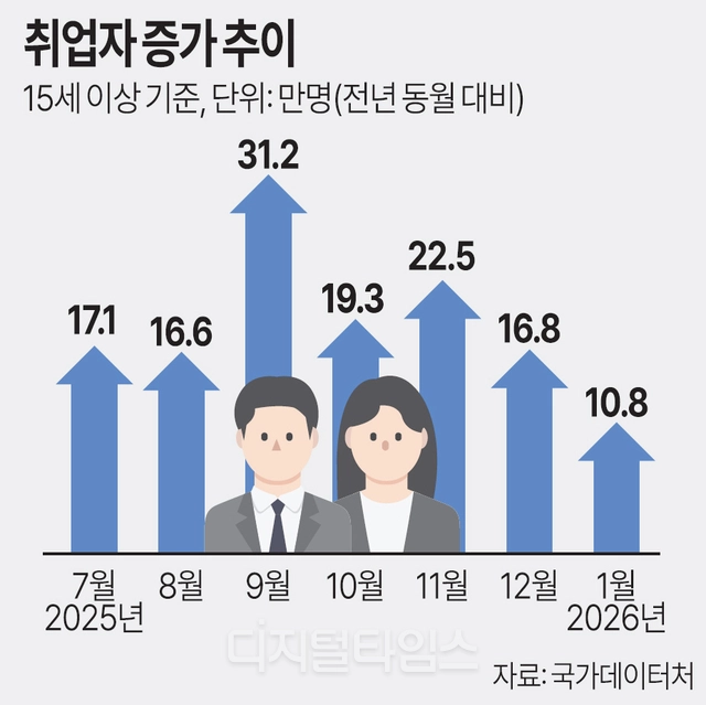 국내 증시가 연일 최고가를 경신하고 있지만 청년들의 취업 전선은 여전히 차갑기만 한 것으로 나타났다. 11일 국가데이터처가 발표한 지난달 고용동향을 보면, 지난달 15세이상 취업자는 2798만6000명으로 전년동월대비 10만8000명 늘었다.