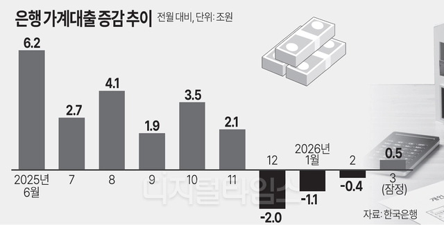 지난달 은행권 가계대출이 넉 달 만에 증가세로 돌아섰다. 정부의 강도 높은 가계부채 관리 기조가 무색한 모습이다. 주택담보대출(주담대)은 규제 효과로 빗장이 걸렸지만 이란 전쟁 등 지정학적 리스크로 국내 증시가 출렁이자 틈새를 노린 ‘빚투(빚내서 투자)’ 수요가 신용대출을 대거 끌어올린 이례적인 ‘풍선효과’가 나타났다.