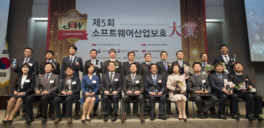 ■제5회 SW산업보호대상개인부문 수상 소감 정품 소프트웨어(SW) 사용을 장려해 SW 저작권 인식을 고취하고 체계적인 SW 자산관리로 국내 SW산업 발전에 앞장선 9명의 인물이 `제5회 SW산업보호대상` 수상의 영광을 안았다. 이들은 이번 수상 소감에서 사회가 SW를 바라보는 인식이 변화하고 있다고 말하며 각자의 현장에서 앞으로도 정품 SW 보호업무에 매진하겠다고 밝혔다. 신동우 한국기계연구원 책임연구원은 "연구원에서 불법SW 사용 근절 문제를 근본적으로 해결하기 위해 직원들과 많은 노력을 기울였다"며 "이제는 불법SW 실시간 통제가 가능해 정품 SW 사용환경이 보다 안정화될 것으로 기대한다"고 말했다. 그는 내년 정년퇴직을 앞두고 있어 올해 안에 문제를 해결하기 위해 작심하고 문제 해결에 집중했다고 밝혔다. 불법SW 방지를 위해 모든 사내 업무를 메뉴얼화한 이광구 코웨이 대리는 "회사 업무와 관련해 상을 받게 돼 매우 영광으로 생각한다"며 "SW 라이선스 관리 영역은 매우 힘든 분야로, 컴플라이언스를 유지하는 게 주된 업무인데 클린사이트를 이용해 SW를 구매하려는 노력을 많이 했다"고 말했다. 오창민 대한무역투